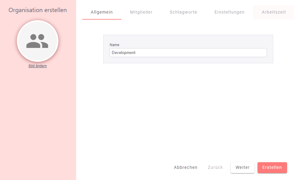 Hier kannst du den Namen deiner Organisation angeben.