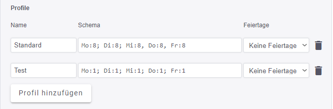 Hier kann man verschiedene Arbeitszeitprofile erstellen, die auf die Mitarbeiter angepasst sind.